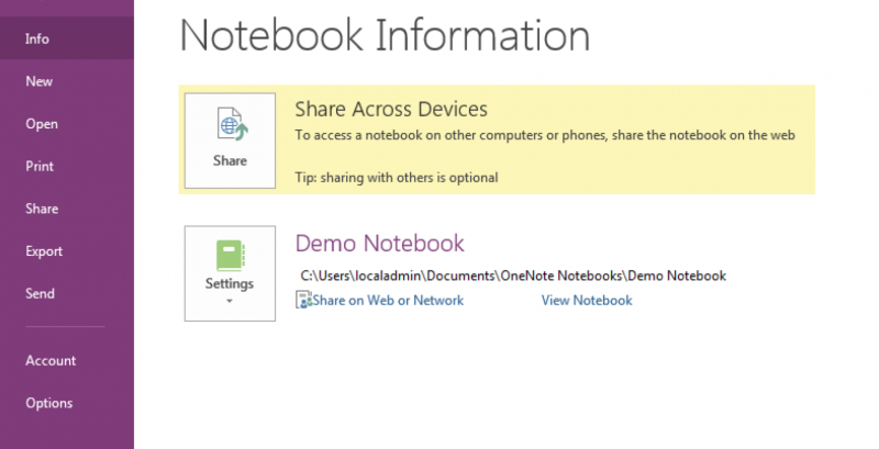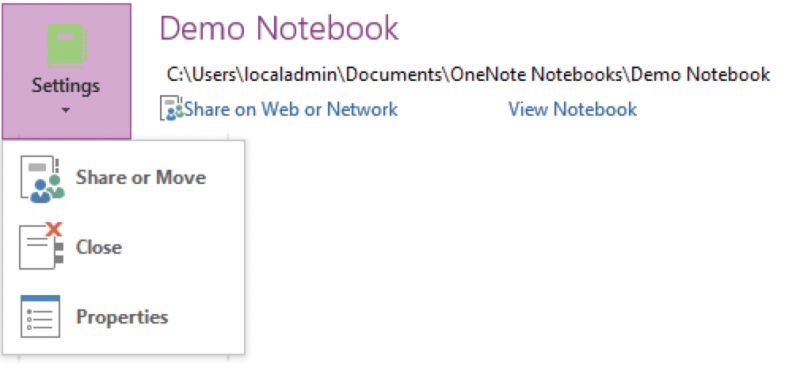 - Click the Settings button beside the local notebook and select Share or Move.